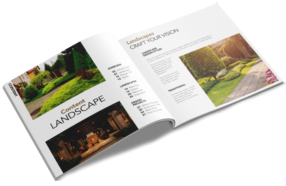 Our guide is packed with inspirational landscape projects, before-and-after stories, and an overview on the most popular layouts & designs of {YEAR}.